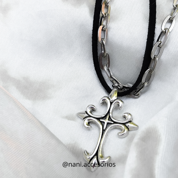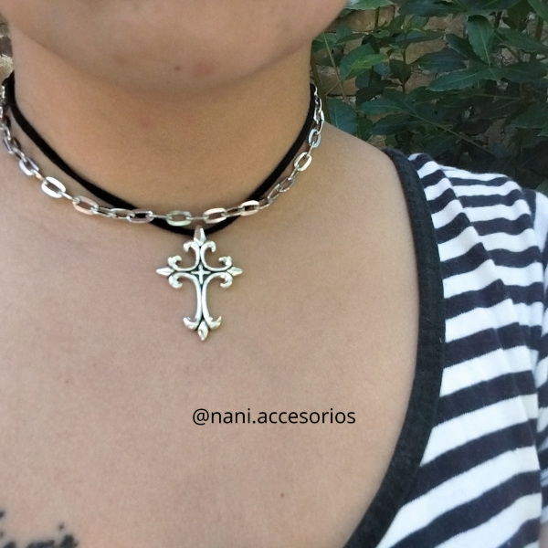 Cordon gamuzado con dije y cadena de Fundición niquelada