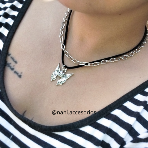Cordon gamuzado con dije y cadena de Fundición niquelada