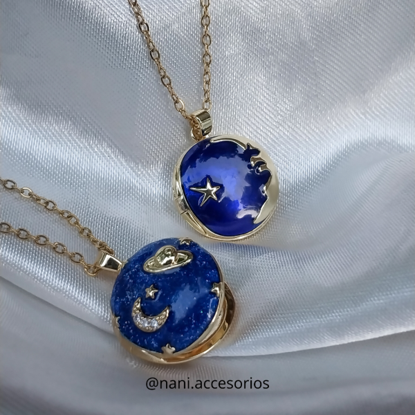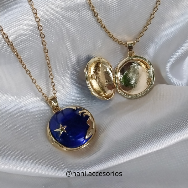 Collar de acero quirúrgico dorado 50cm, dije relicario esmaltado